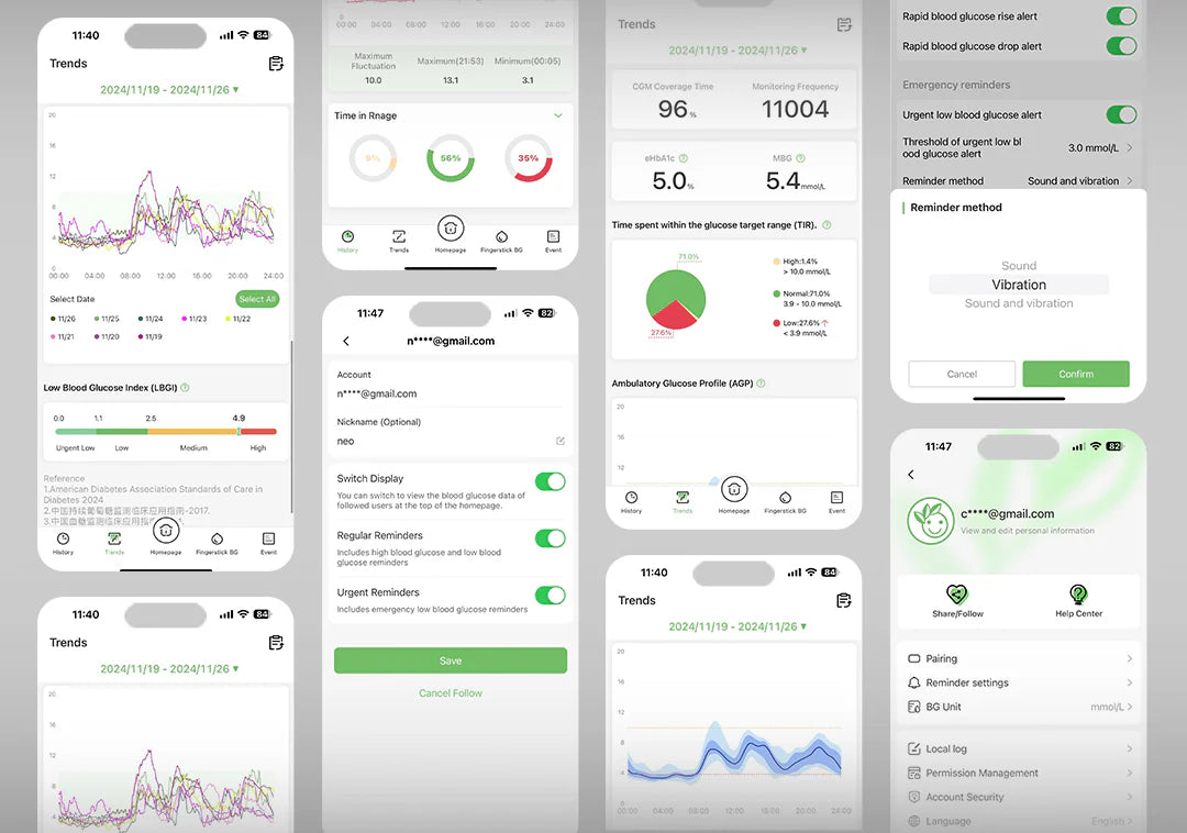 Az alkalmazás folyamatosan figyeli a vércukorszintedet, és azonnali értesítéseket küld magas vagy alacsony értékek esetén. Ezek az értesítések személyre szabhatók, így mindig időben értesülsz, ami nyugalmat ad és lehetőséget biztosít a gyors cselekvésre, amikor szükséges.